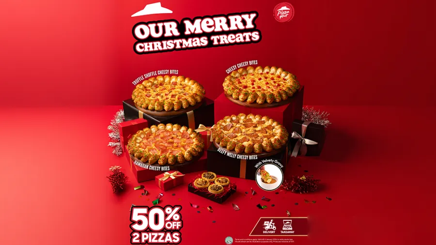 Pizza Hut Singapore is rolling out new festive offerings with four Cheesy Bites pizzas, led by the Beefy Welly Cheesy Bites Pizza, served with a Christmas-style gravy.